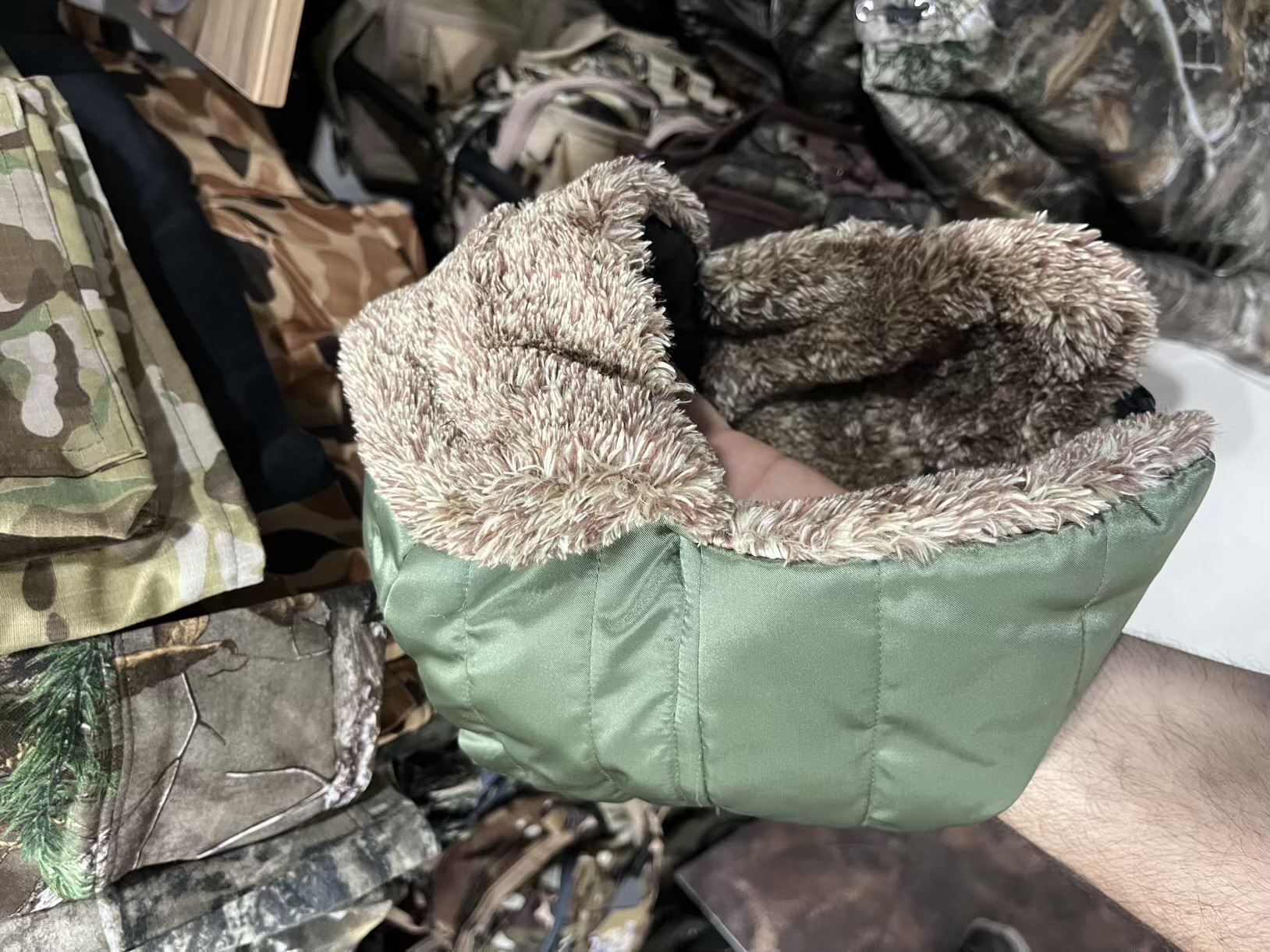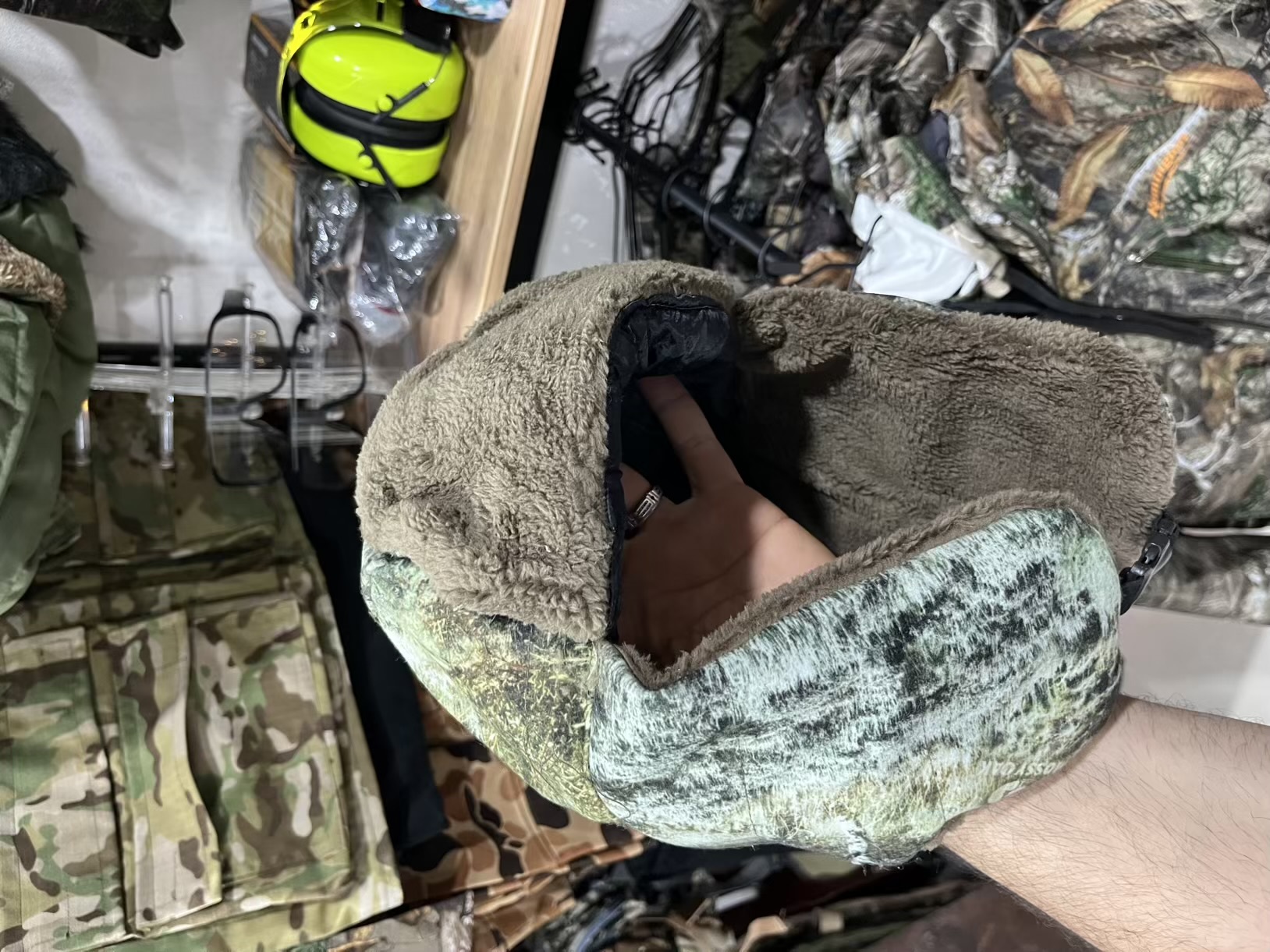 این کلاه تو پشمی میباشد و گوش و پیشانی رو دربرابر هوای سرد و برفی حفاظت میکند دارای گیره در قسمت پاییی گردن میباشد که کلاه رو هوا و طوفان نبره